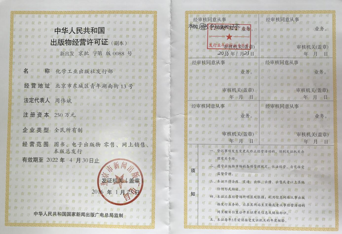 2018 © 化學(xué)工業(yè)出版社有限公司. ALL Rights Reserved. 京ICP備12046843號(hào)-7 | 京公網(wǎng)安備 11010102000557號(hào) | 網(wǎng)絡(luò)出版服務(wù)許可證 | 出版物經(jīng)營(yíng)許可證副本 | 出版物營(yíng)業(yè)執(zhí)照副本